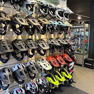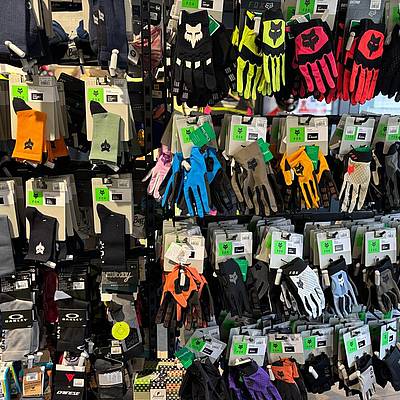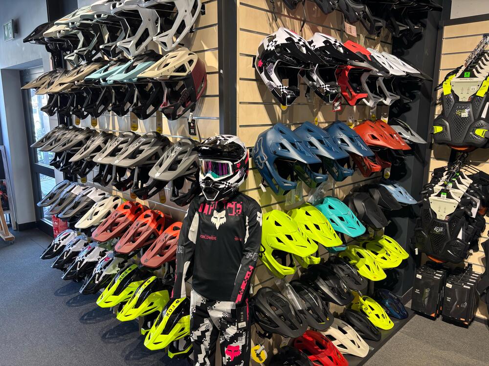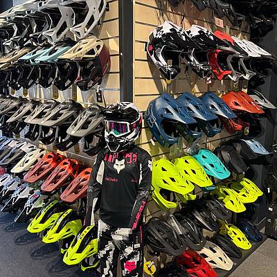 - Cyclists can buy bike MTB, enduro, full face helmets as well as bike wear, bike shorts, socks, gloves, bandanas and other equipment accessories such as: goggles, eyeglasses, knee and shoulder pads, back protectors, armour.